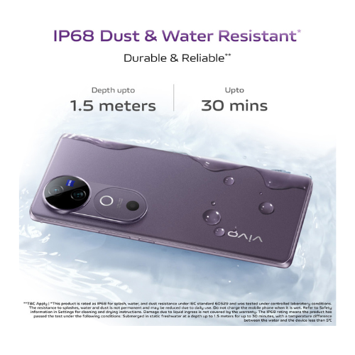The V40 series features IP68 dust and water resistance, providing reliable protection against dust and water splashes, so you can use your phone worry-free.