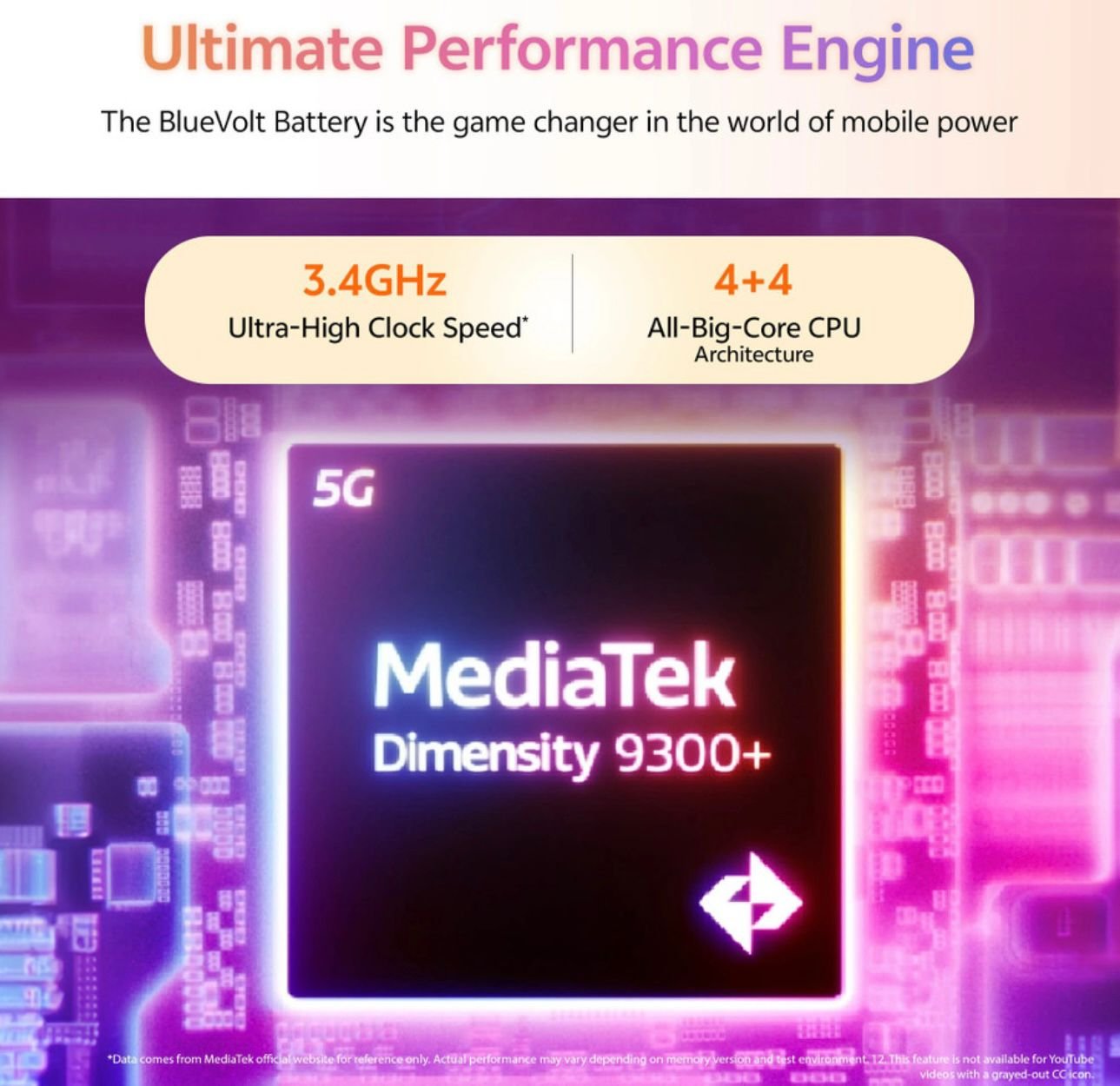 The Dimensity 9300+ flagship chipset is supported by the cutting-edge 4+4 all-big-core CPU architecture, developed between vivo and MediaTek across eight key areas for enhanced performance, thermal control, and power efficiency.
